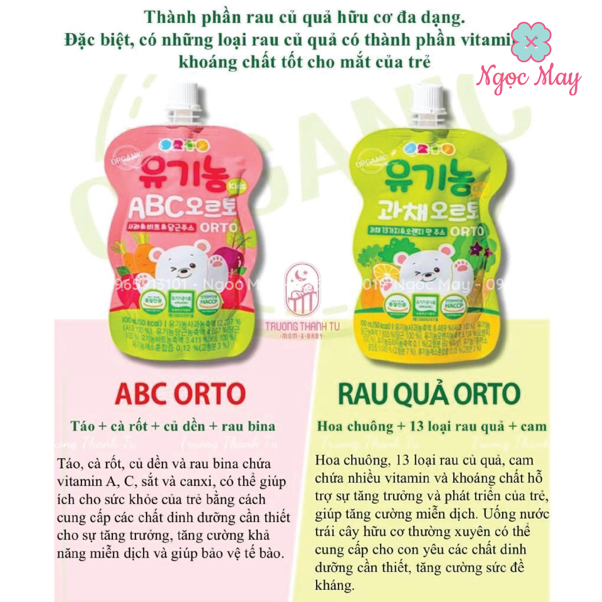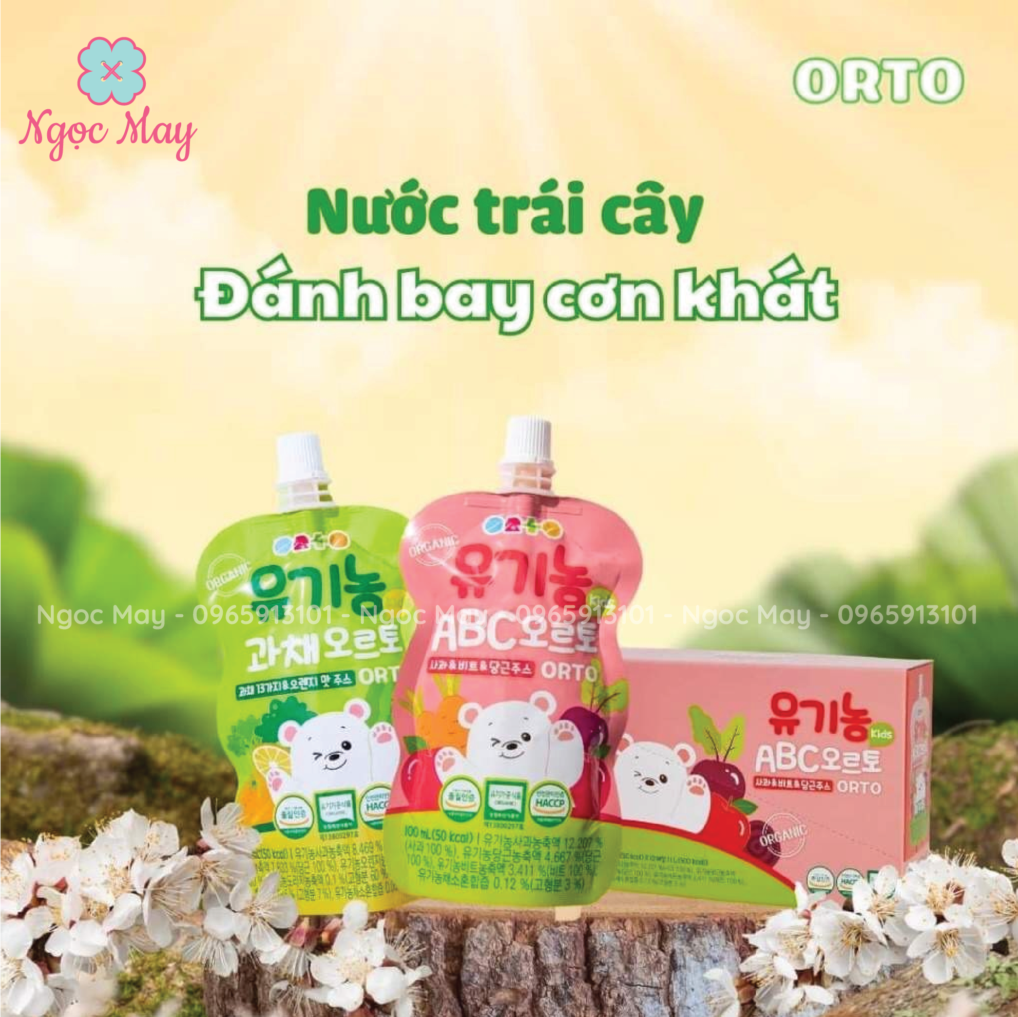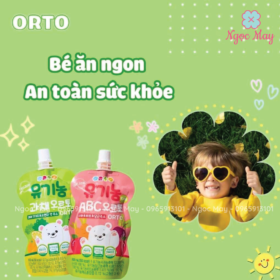 – Nước dinh dưỡng thiên tài ORTO màu hồng: Kết hợp của Táo – Cà Rốt – Cù Dền giúp bé Phát triển trí não, tăng cường thị lực, bổ sung chất xơ + vitamin tốt cho tim mạch, gan, thận…..