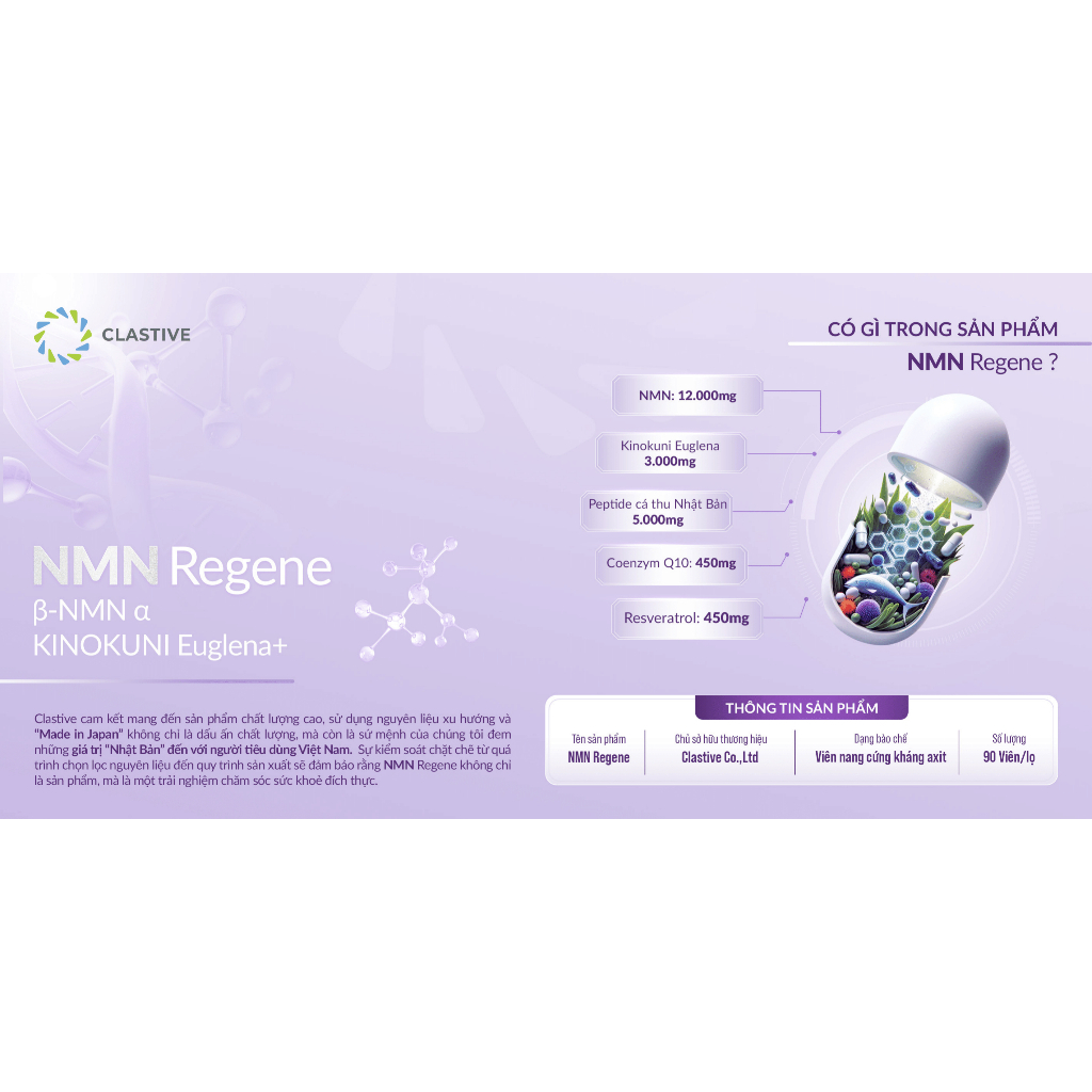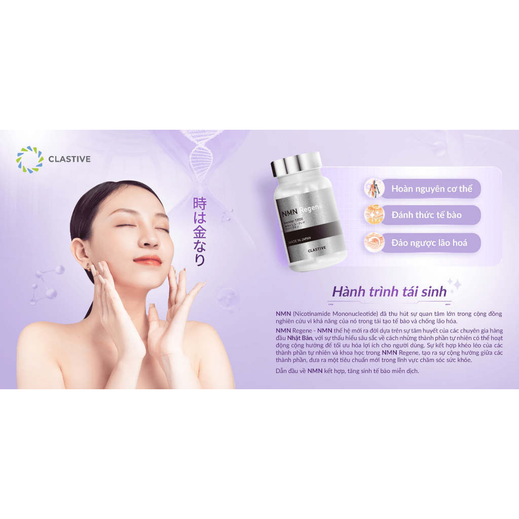 Viên Uống Trẻ Hóa Da NMN Regene Hoàn Nguyên Nhật Bản, Đảo Ngược Lão Hóa, NMN 12000mg Lượng NAD+ gấp 500 lần vitamin E